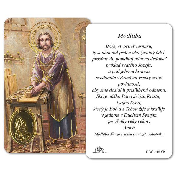 Balenie 25 ks laminovaných kartičiek z papiera s imitáciou zlatej medaily na prednej strane a modlitbou na zadnej strane.