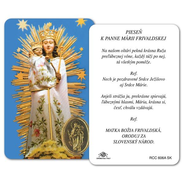 Balenie 25 ks laminovaných kartičiek z papiera s imitáciou zlatej medaily na prednej strane a modlitbou na zadnej strane.