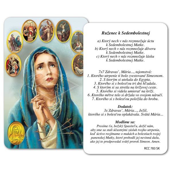 Výrobok RCC je laminovaná kartička z papiera s imitáciou zlatej medaily na prednej strane a modlitbou na zadnej strane.