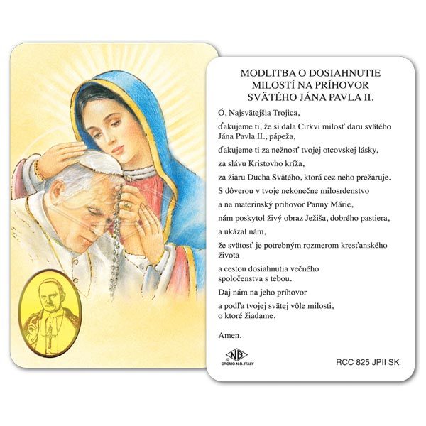 Balenie 25 ks laminovaných kartičiek z papiera s imitáciou zlatej medaily na prednej strane a modlitbou na zadnej strane.