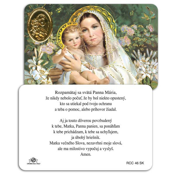 Balenie 25 ks laminovaných kartičiek z papiera s imitáciou zlatej medaily na prednej strane a modlitbou na zadnej strane.
