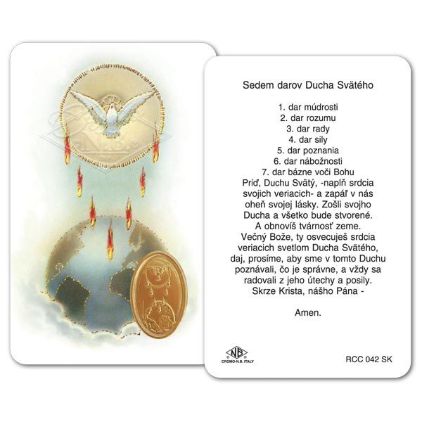 Balenie 25 ks laminovaných kartičiek z papiera s imitáciou zlatej medaily na prednej strane a modlitbou na zadnej strane.