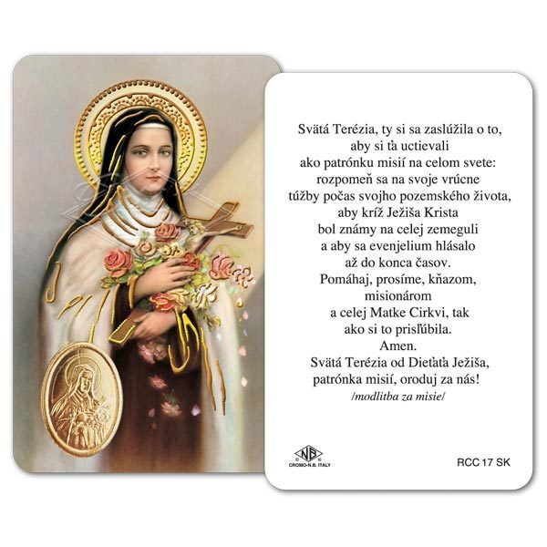 Balenie 25 ks laminovaných kartičiek z papiera s imitáciou zlatej medaily na prednej strane a modlitbou na zadnej strane.