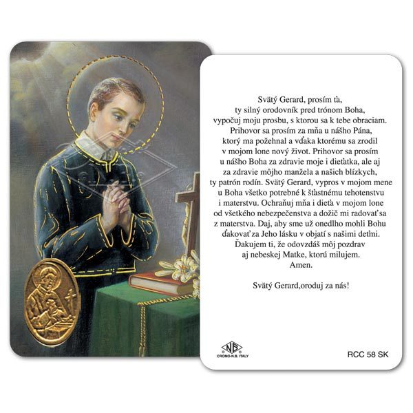 Balenie 25 ks laminovaných kartičiek z papiera s imitáciou zlatej medaily na prednej strane a modlitbou na zadnej strane.